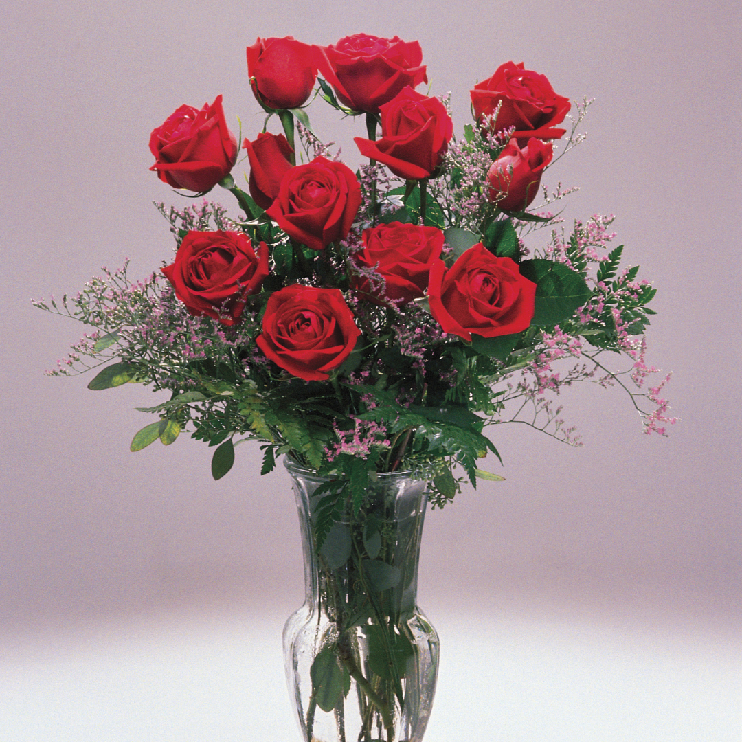 Timeless and classic, roses never go out of style. Set the tone with a dozen roses, greenery and filler in a simple vase to create a lovely gift that’s sure to delight.
