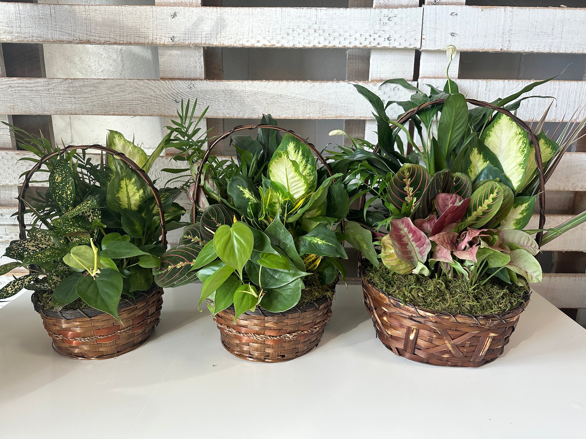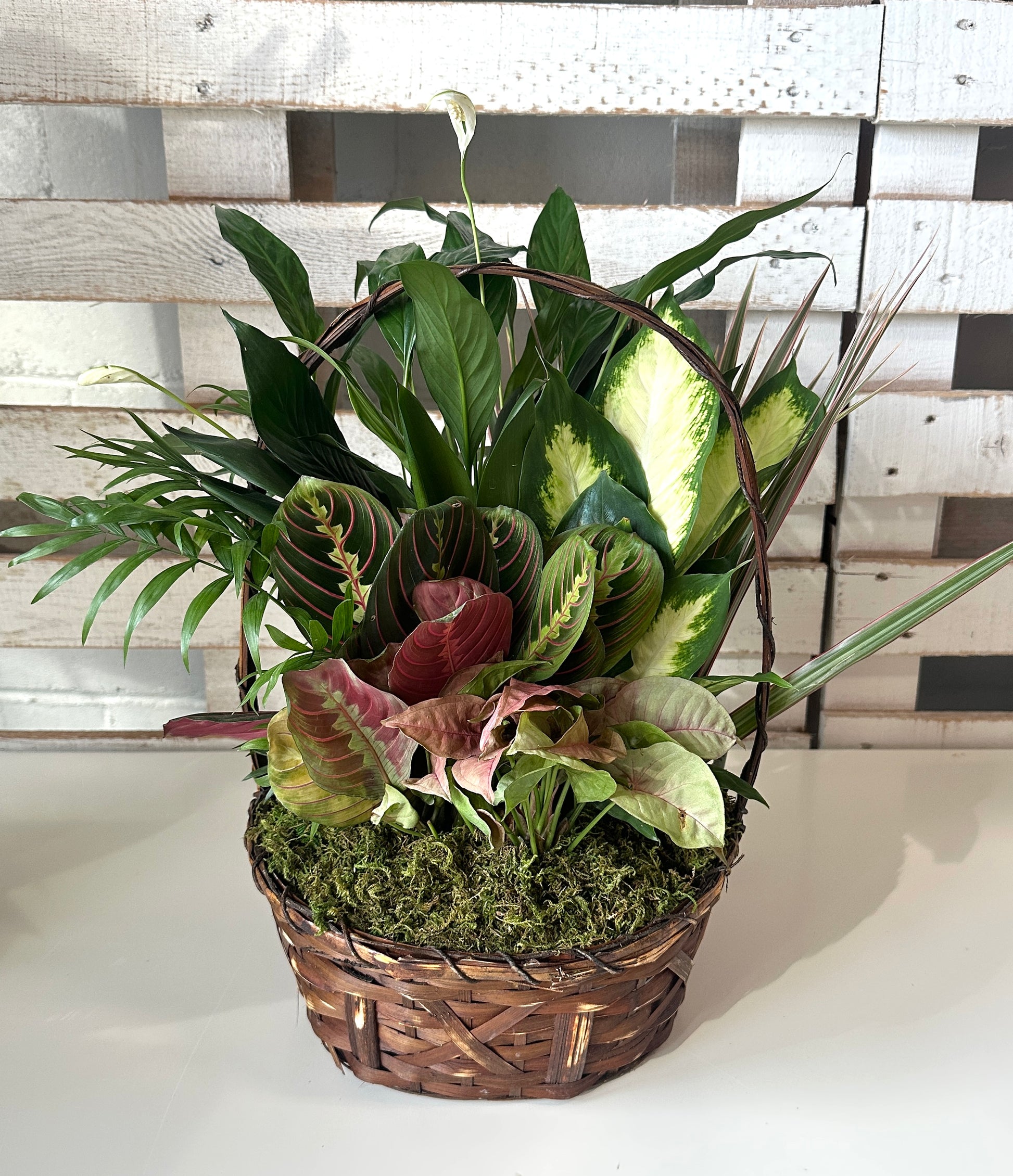 Don't know what to send besides flowers? A dish garden is a fantastic, showy, long-lasting gift. Assorted houseplants arranged in a basket are a great gift for any occasion including housewarming, funeral and sympathy, get well, and more. They are easy to maintain and are great for a tabletop or desk.