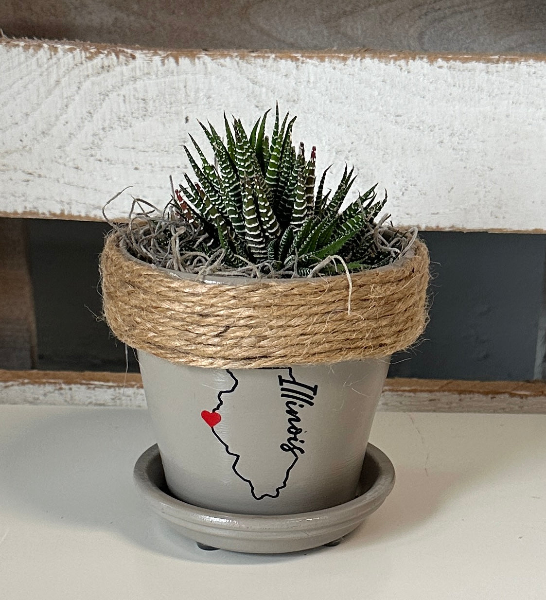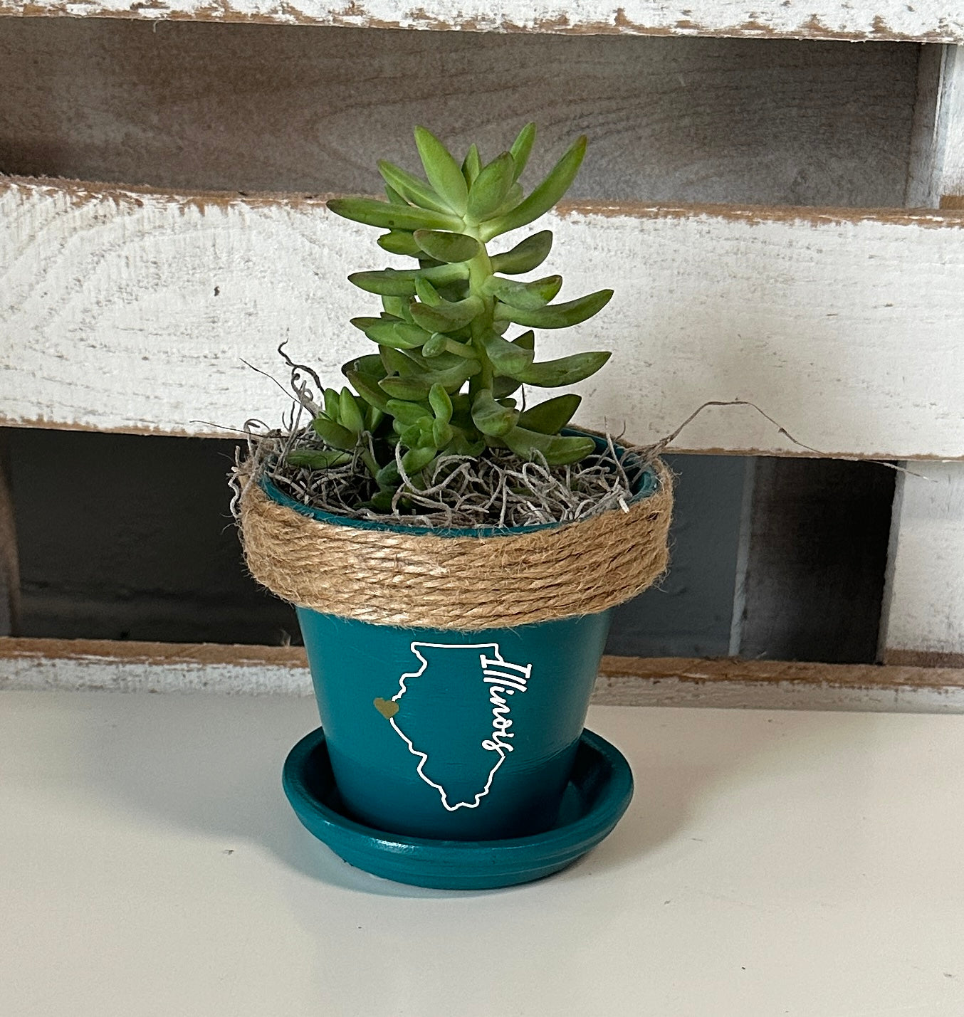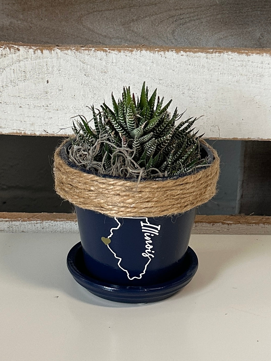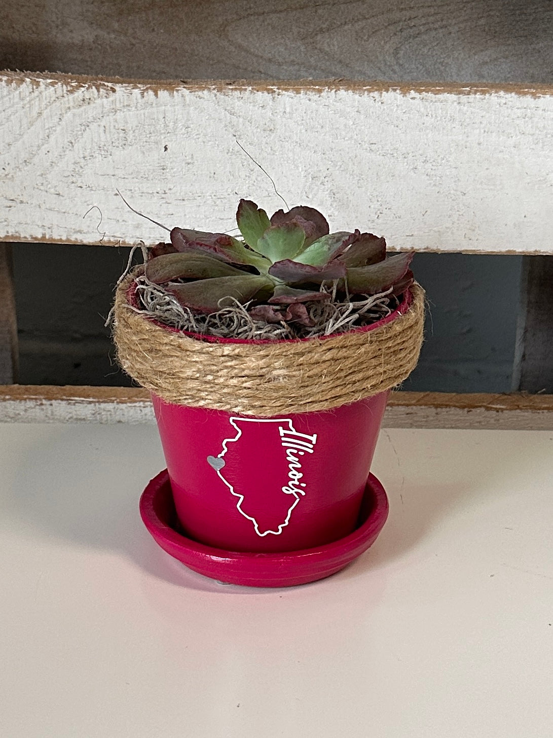 Adorn your home and declare your hometown pride with these unique, hand-painted clay pots potted with a sweet succulent. Pot Size: 4"
