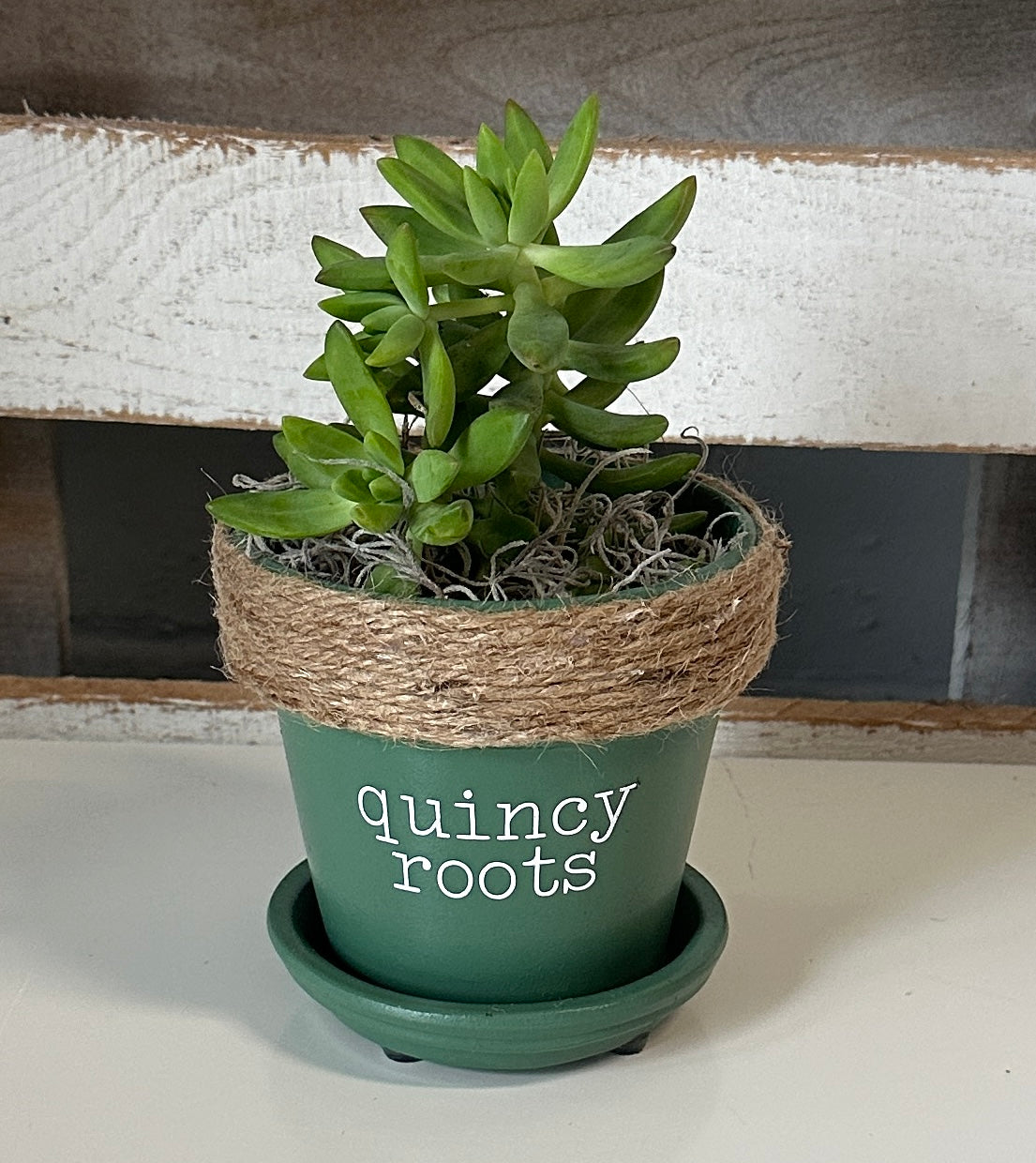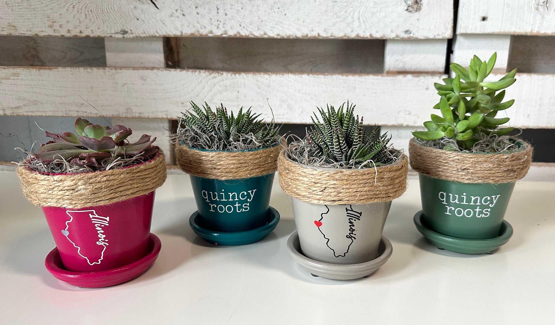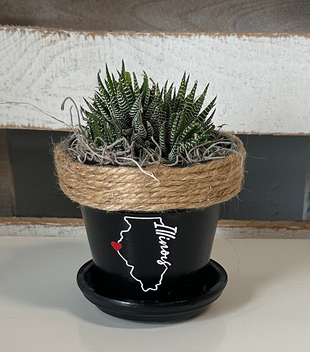 Adorn your home and declare your hometown pride with these unique, hand-painted clay pots potted with a sweet succulent. Pot Size: 4"