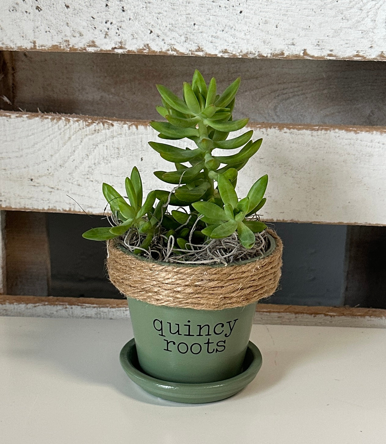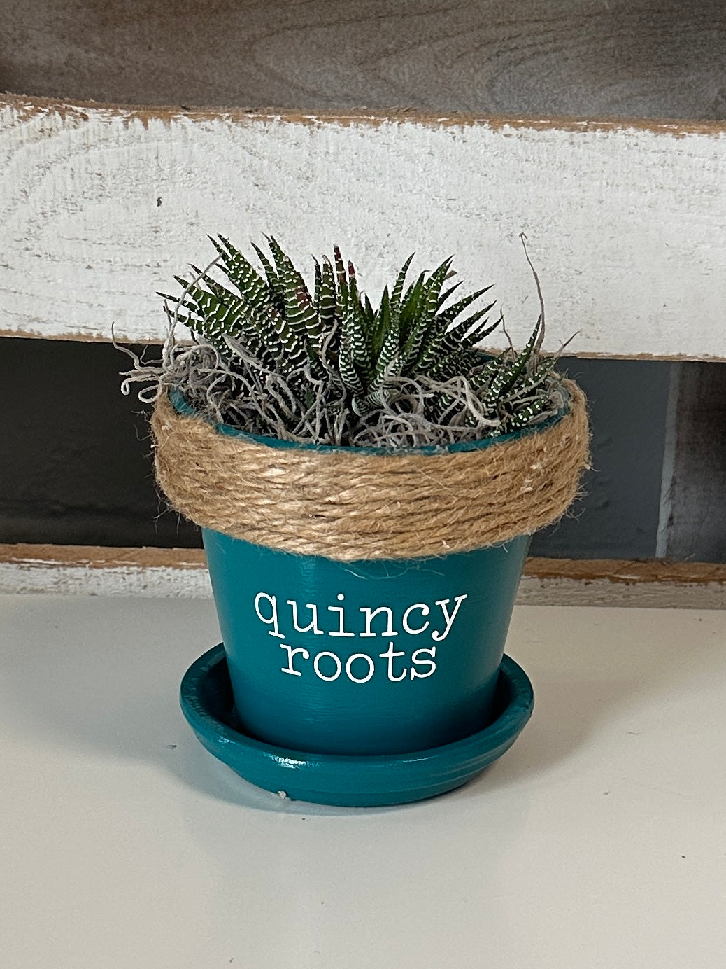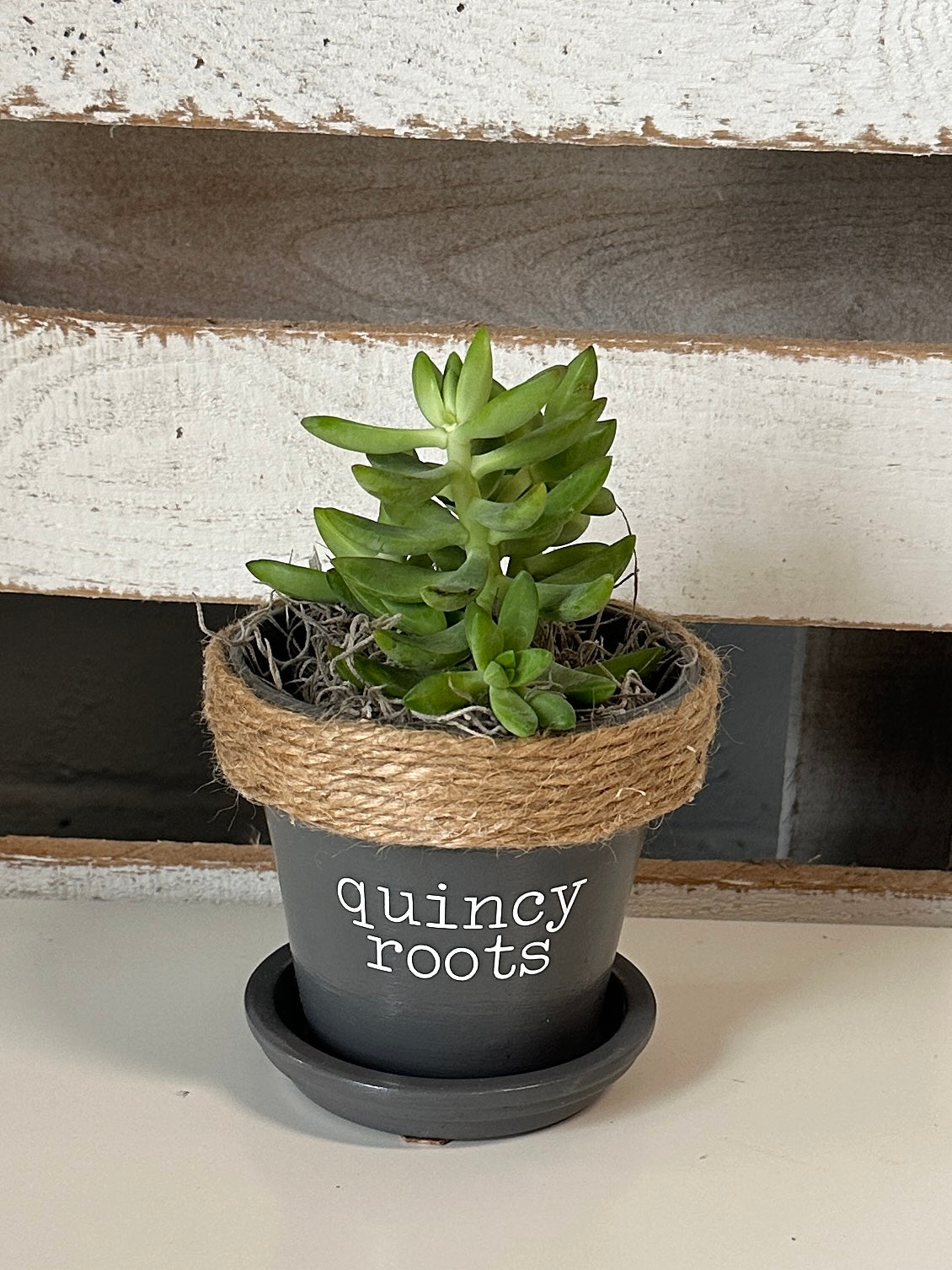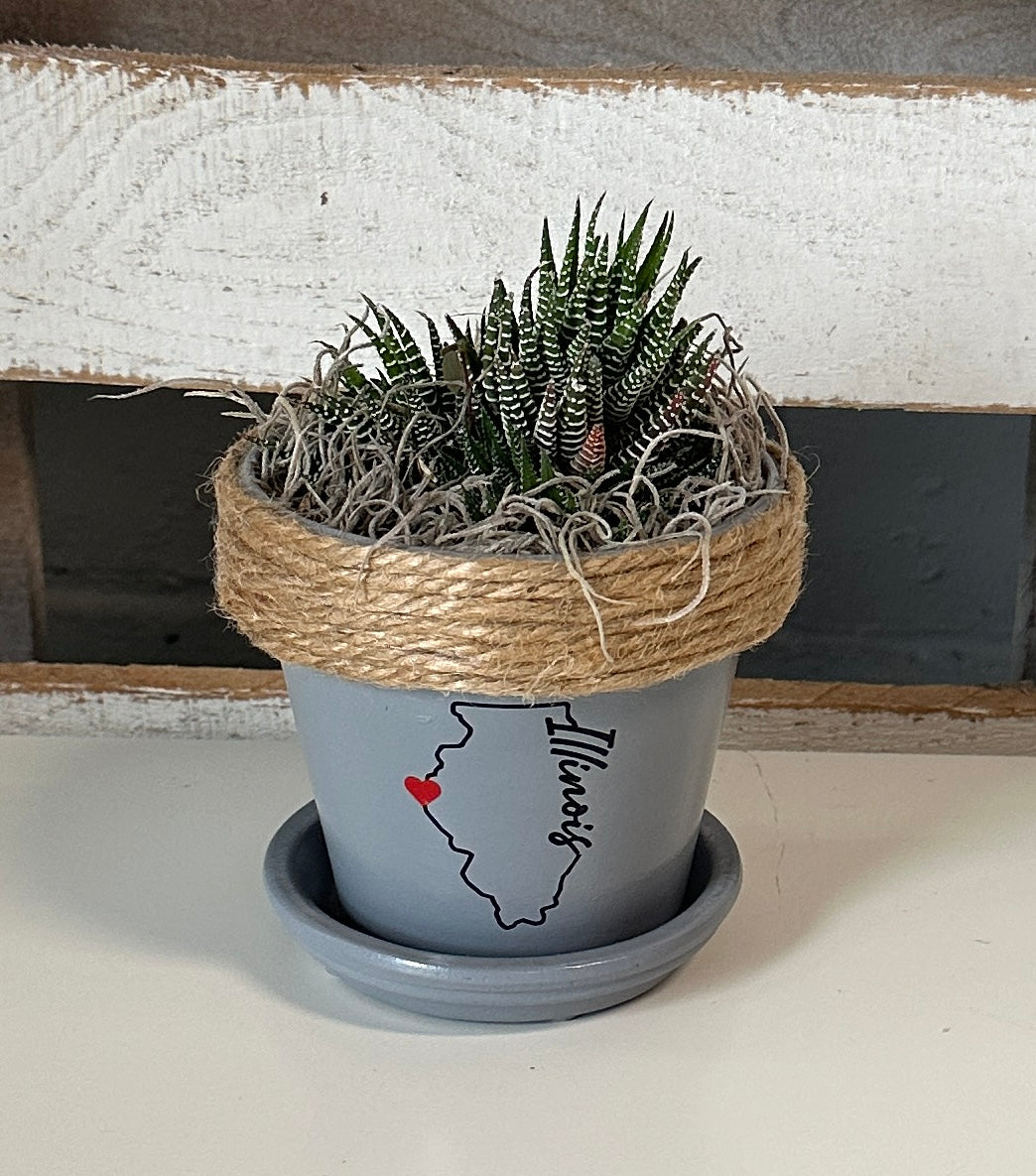 Adorn your home and declare your hometown pride with these unique, hand-painted clay pots potted with a sweet succulent. Pot Size: 4"